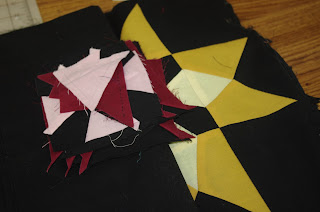 The last few days I have been able to quilt, I did. I was at this point on Thursday, and then the weekend came. Friday was one of those days I missed I stayed home! Went to my mother's quilt group Friday morning (after running round with my head chopped off), and ended up making 7 more needle cases to give out at retreat! Luckily Ethel told me to sew around them and she would get the ribbon and finish them. BUT I have yet to figure out my mother! She doesn't know where anything is! We used the ribbon a couple weeks before to make the cases her and I said we would. THEN Friday she was getting "PO'd" at me for asking her where stuff was! Did she know?? - NO! UGH. So, I ended up using what I found on hand and then gave them to Ethel to put the ribbon in and sew them up. Talked to her last night and she had to redo one of them, and I figured that would be the case, as one of them I was having trouble with. At least those are done. We had 2 months to do this, and we had one gal that "forgot." So, those 7 had to be done by today. I always hate that. And of course, I'm the one in that group that ends up picking up the pieces because no one else will. Everyone wants to work on their stuff and forget about helping. I have decided to quit going to my mother's group for a while. I'm tired of being the host.
