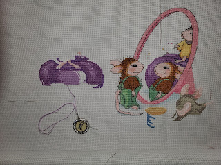 I am getting that purple done! I am getting closer to finishing it. I'm starting to run low on the light purple, so that's a good sign that it isn't too far from being done. I can hope! I did have to take out about 5 stitches, but that's nothing compared to some of the ripping I've done before.