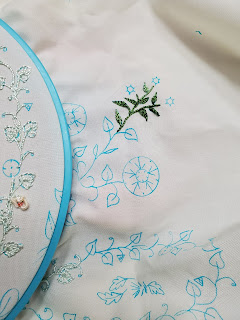 This morning was Brazilian embroidery meeting day. I was happy to get back to embroidery for today. I had things to do before and after our meeting. We had an awesome meeting! David (Alice's son) came in to see us. I hadn't seen him for a long time and had to give him a hug! We chatted a good hour. Even Bev got in on chatting with him. They both knew the same friends. It was fun!