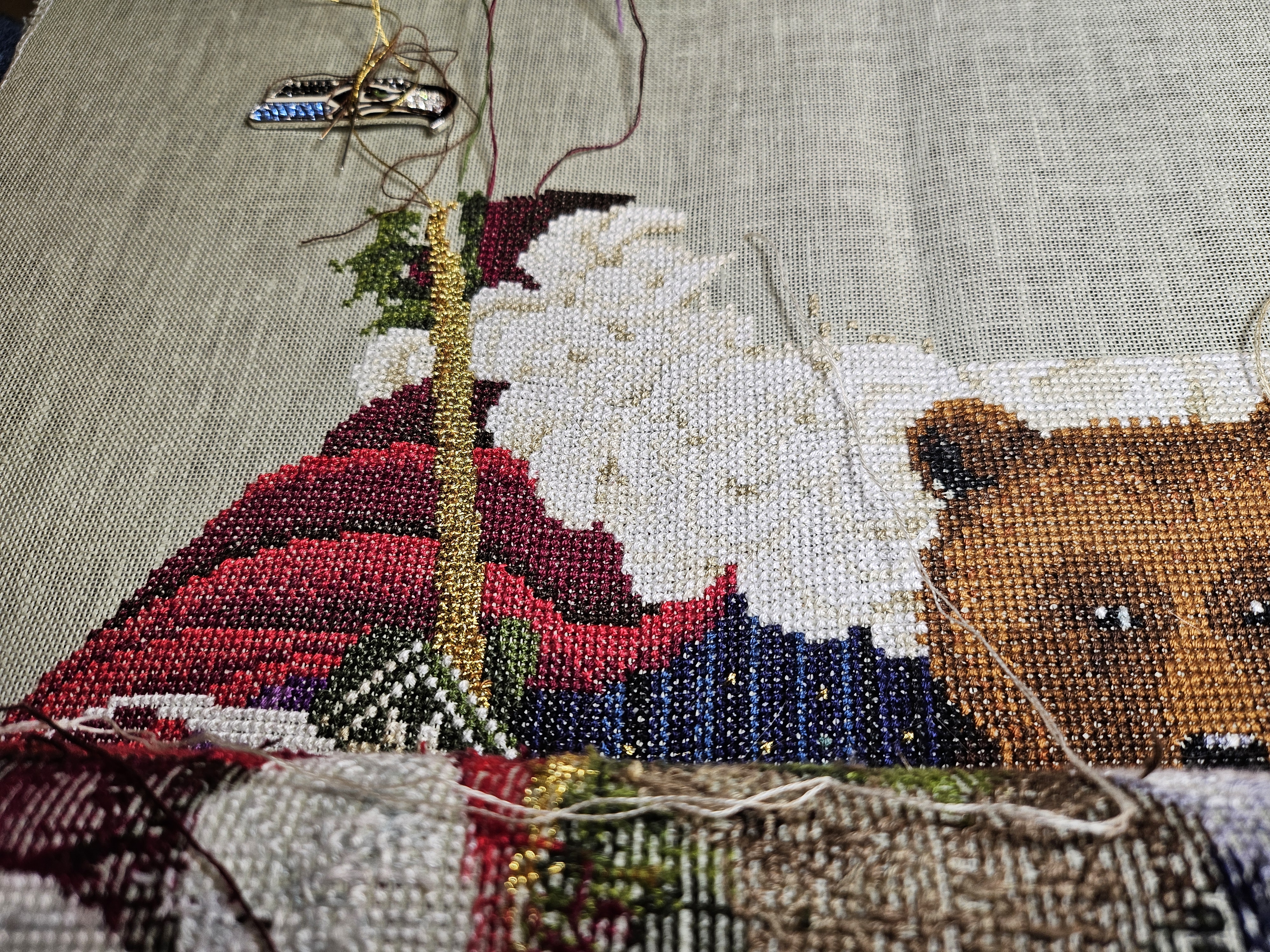 Decided to work on the cross stitching. I'm surprised at how much easier it was to work on it today. I was actually on track and didn't need to take any stitches out. That felt good to know!